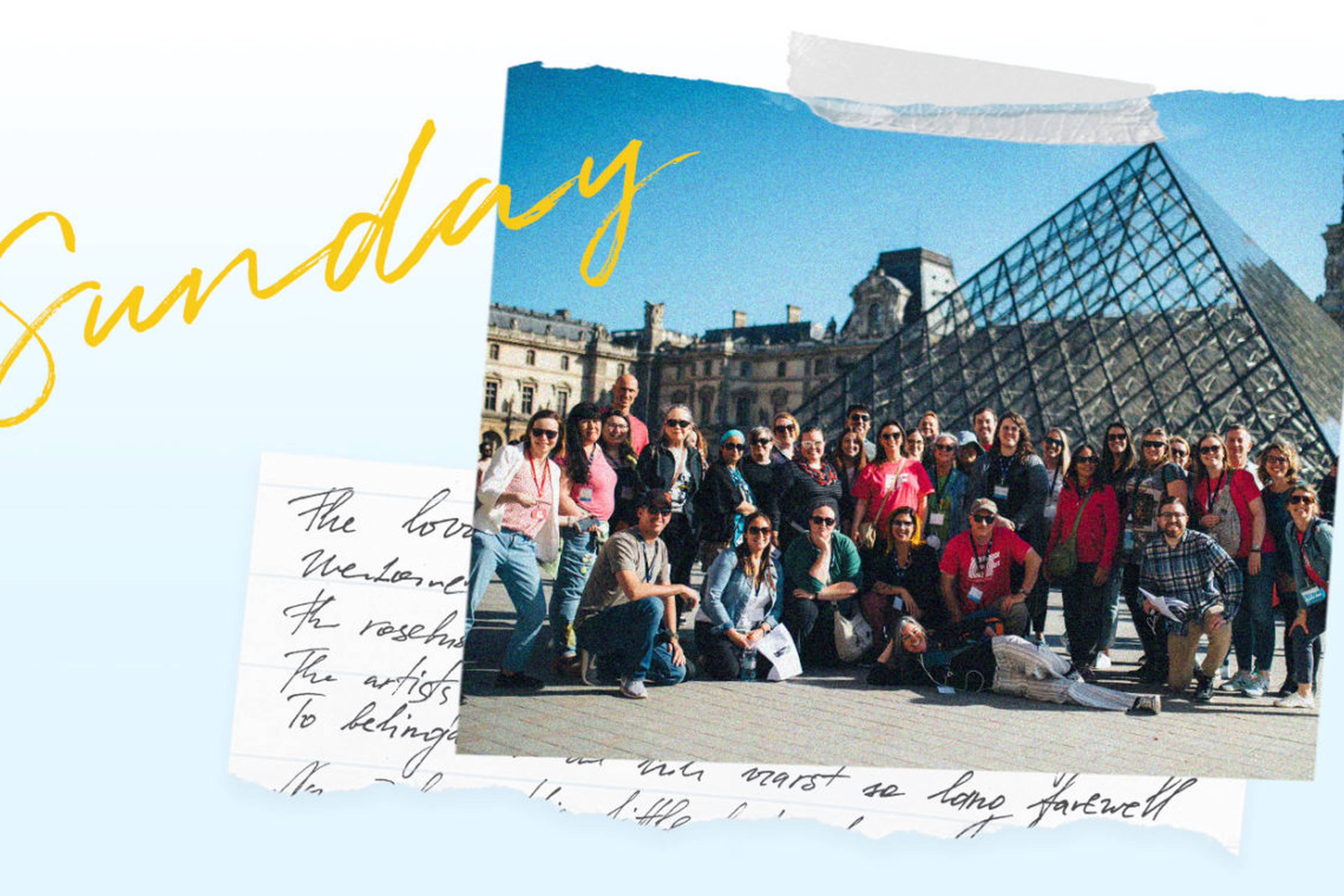 Bonjour, Paris! 🇫🇷 What a long flight, but how nice to see Jess, an EF staff member, waiting for me and other teachers who arrived at the same time on the other side of baggage claim. We loaded our suitcases onto the bus and headed straight to the Louvre to meet the rest of the group.