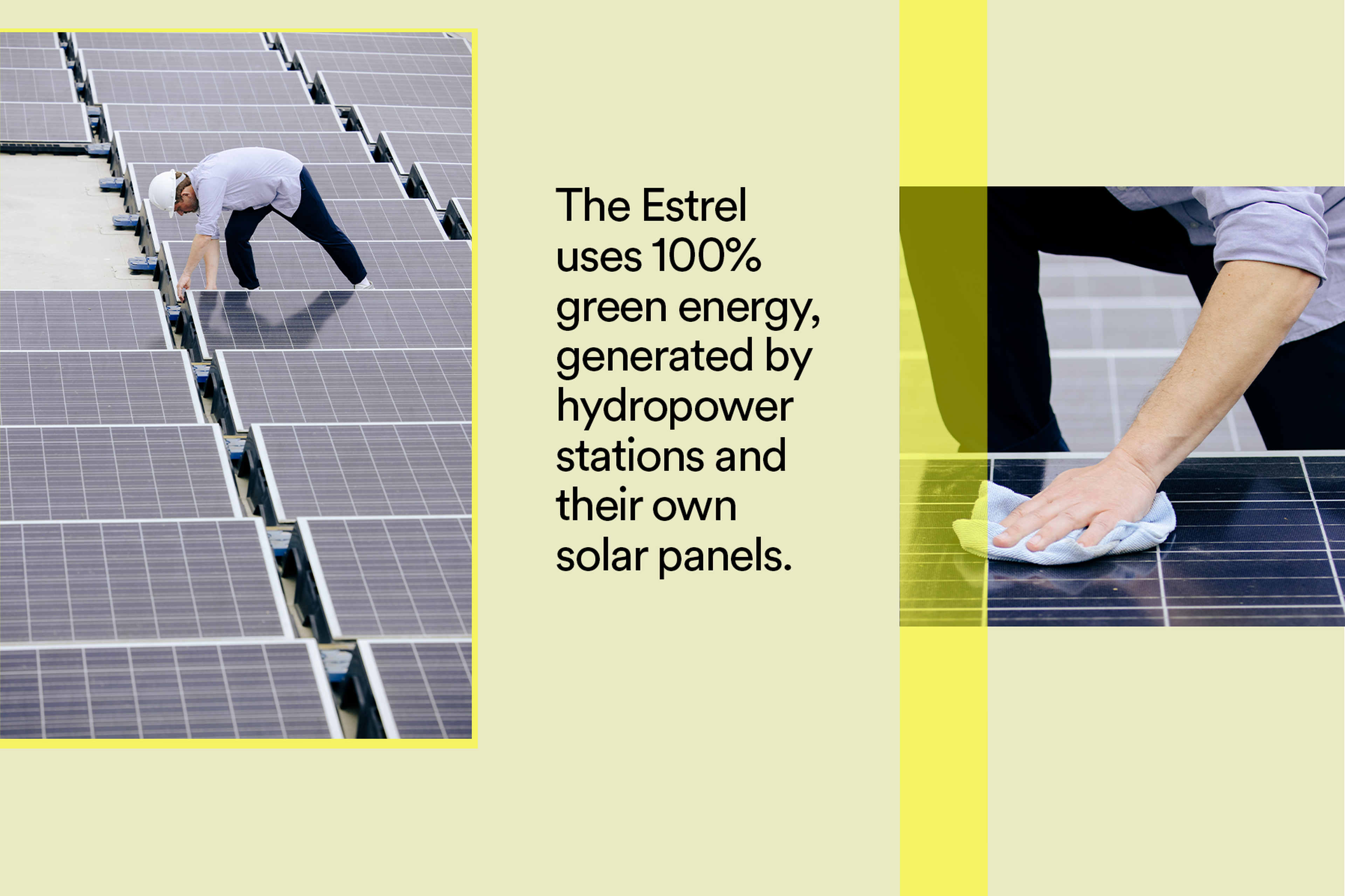 Let’s start from the top (literally) with the Estrel’s rooftop, which is specifically designed to support wildlife protection as well as food and energy production. On some parts of the roof, greenery is planted to capture pollution particles, work as a natural climate regulator, and provide a home for insects. On a different section, a 42-square-meter greenhouse grows all the hotel’s vegetables and herbs. The rooftop gets another (green) thumbs up for its integrated photovoltaic* system that produces electricity for the hotel. As responsible travel advocates, these are the kinds of innovative initiatives that make us proud to partner with the Estrel.