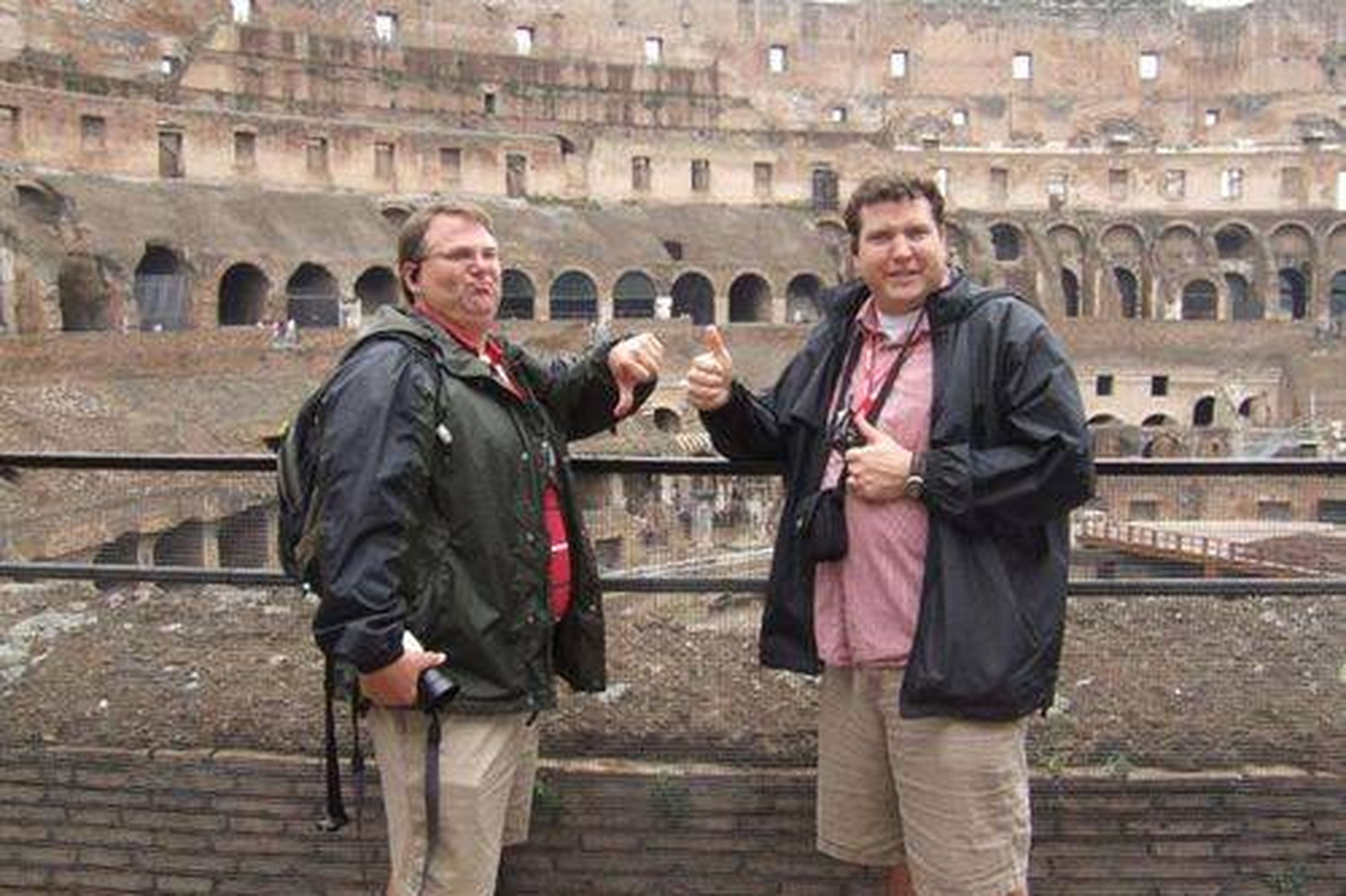 We have a Photobucket account that lets everyone go online and share the pictures of others. Ever get home from a trip and realize that the photographer barely ever gets in the picture? I would not have that crazy picture of me (left) at the plaza of Florence, Italy, if it weren’t for Facebook.