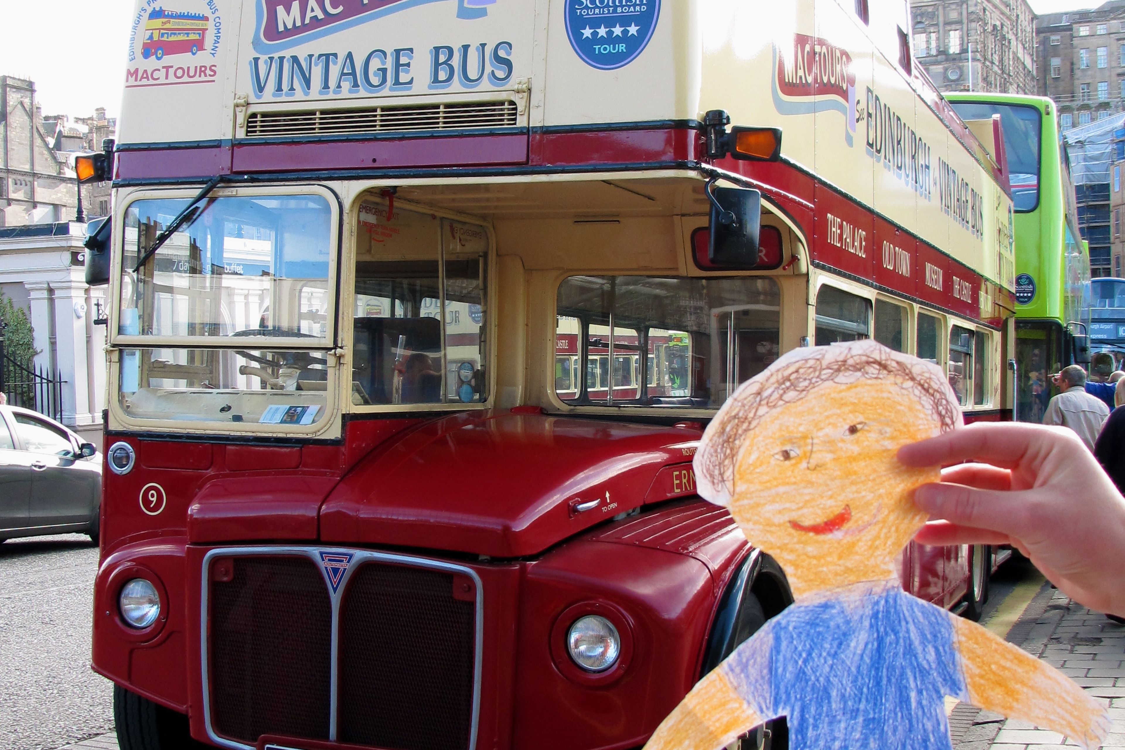 As Flat Stanley’s host, she had to make certain Flat Stanley had a wonderful time in Edinburgh, which is not hard to do even if you are just a paper doll. Along with the photographs, my daughter sent a report of the adventures of Flat Stanley which included a visit to the Scott Monument, a ride on a double-decker bus, a stop at the Edinburgh Dungeon, a meal of fish-and-chips, a chat with one of the street performers on the Royal Mile, and finally a trip to the Royal Mail box to post her report.