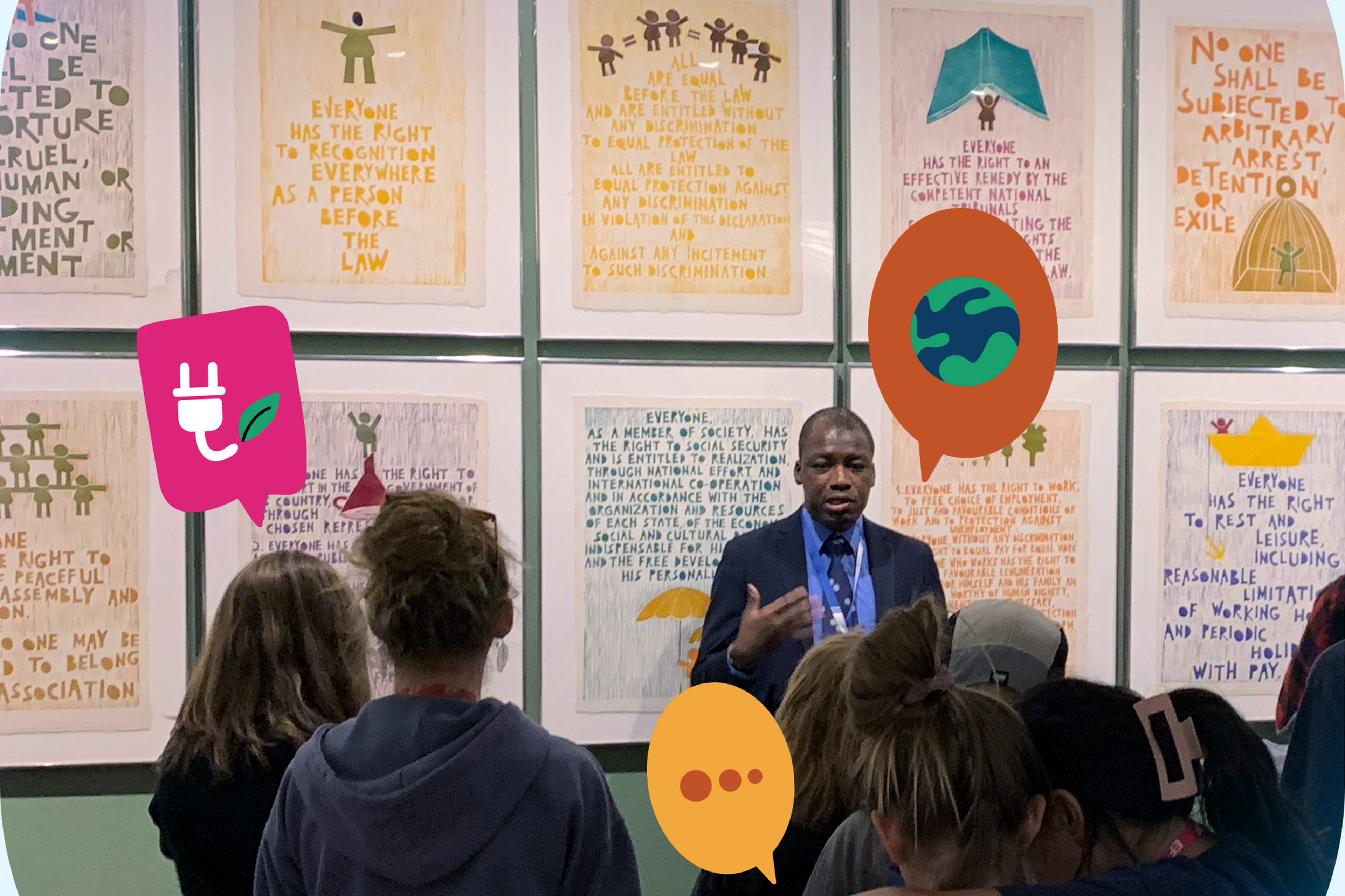 After a quick break, the group headed to UN HQ. “There was this anticipation. You could just feel kids’ excitement,” Karen said. With the help of a guide, the group got to see art exhibitions that highlight topics that are important to the UN, such as human rights and sustainable development. Curious students could ask their guide specific questions as they walked through, and it was during these moments that a wave of pride fell over Karen again. “These are 12- and 13-year-old children. They don't have that tangible real world knowledge and experience that adults, or even young adults, have,” she explained. “So to see them so excited and invested shows me they have this enormous potential for making an impact in the future—because at 12, they already care so much."